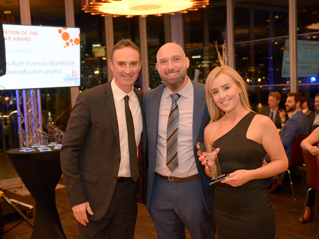 Nick Cox, Alex Simmons and Pauline McCann with the Innovation Award, won by the team at Auburn Ruth Everuss.