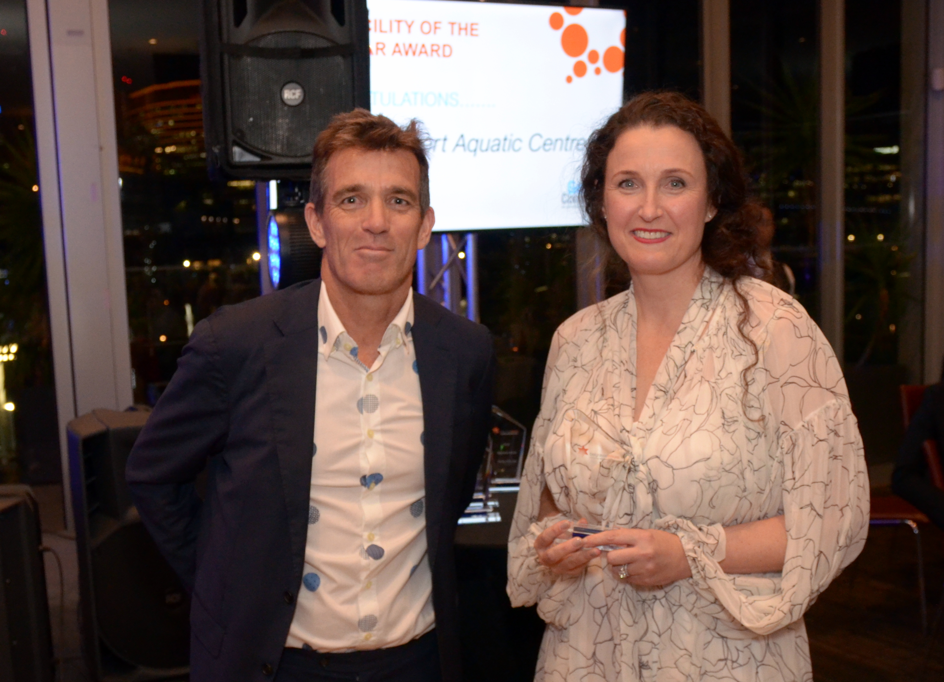 Centre Manager, Sandie Williams, accepts the award for Qld Facility of the Year, won by the team at Mudgeeraba Aquatic Centre.