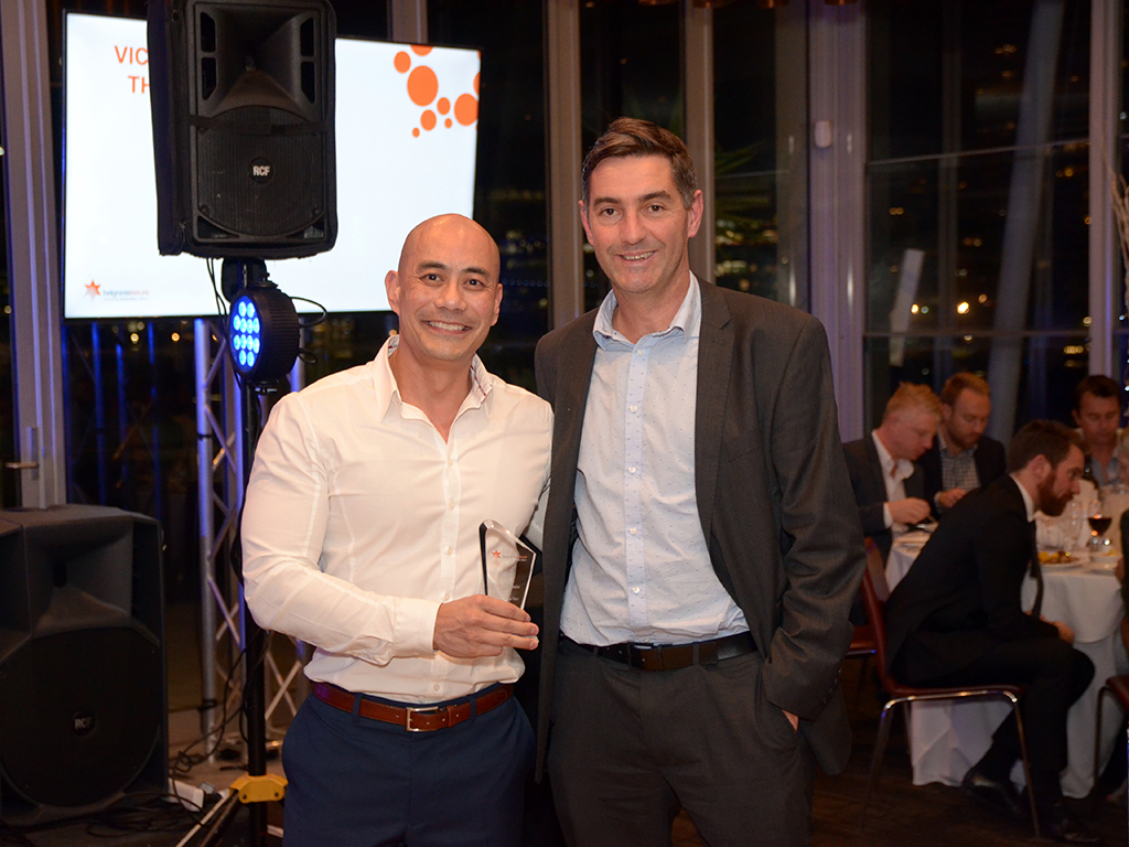 Loftus Facility Manager, Andrew Ng, accepts the award for WA Facility of the Year, won by Loftus Recreation Centre, with State Manager Rohan Gunton (right).